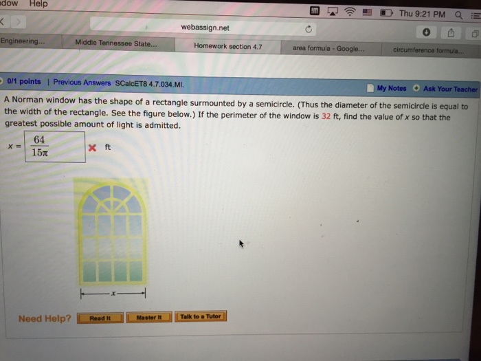 Maximum Area A Norman window is. Thus the diameter of the semicircle is equal to the width of the rectangle If the. Let r the radius of the semi-circle.